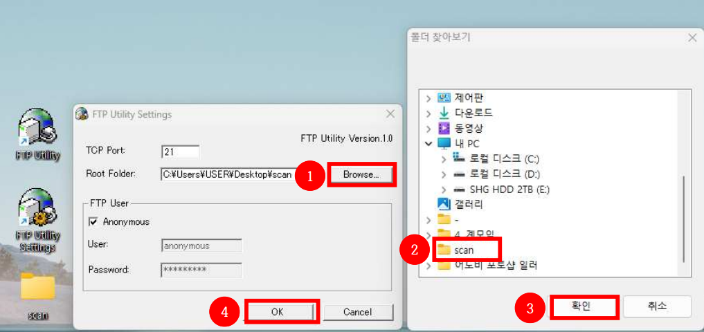 FTP Utilty Settings 실행시켜 사진과 같이 설정한다.